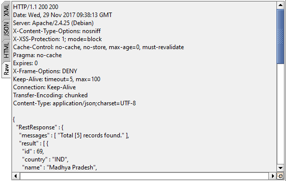 Shows the raw bytes of the response. For an HTML page, this view contains the following: